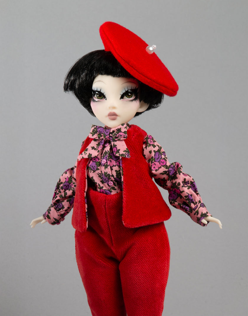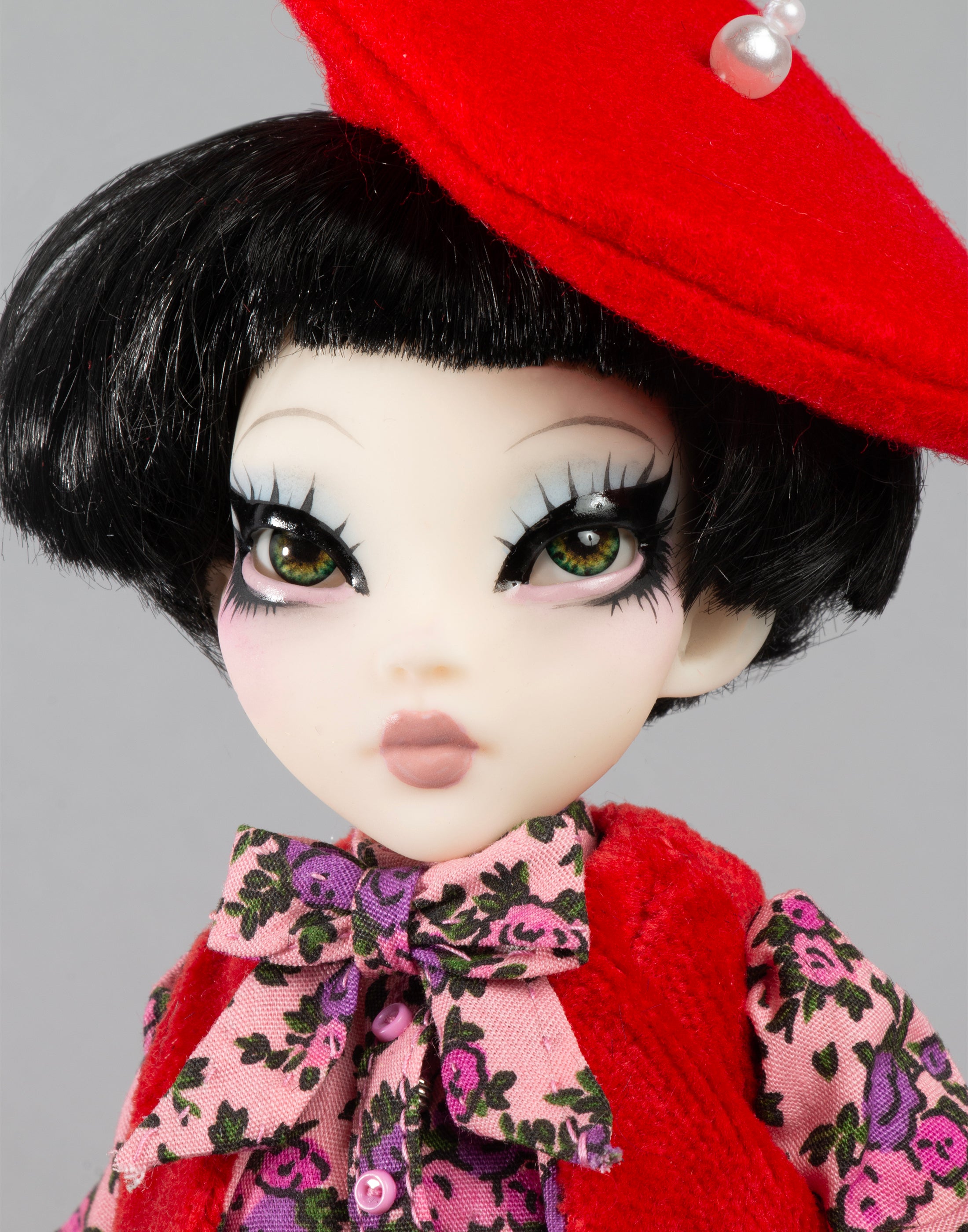 Hand-cast high-quality resin doll with 7 points of articulation internally strung with elastic; hand painted; inset acrylic eyes; removable acrylic wig.