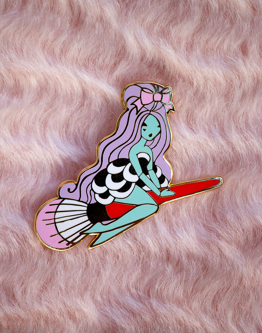 Material: hard enamel with gold-colored metal trim and two metal clutches