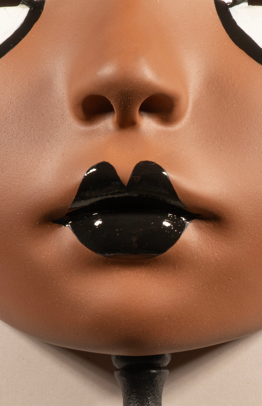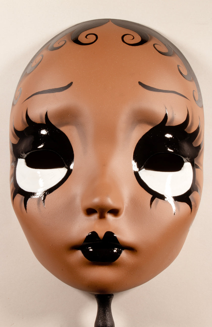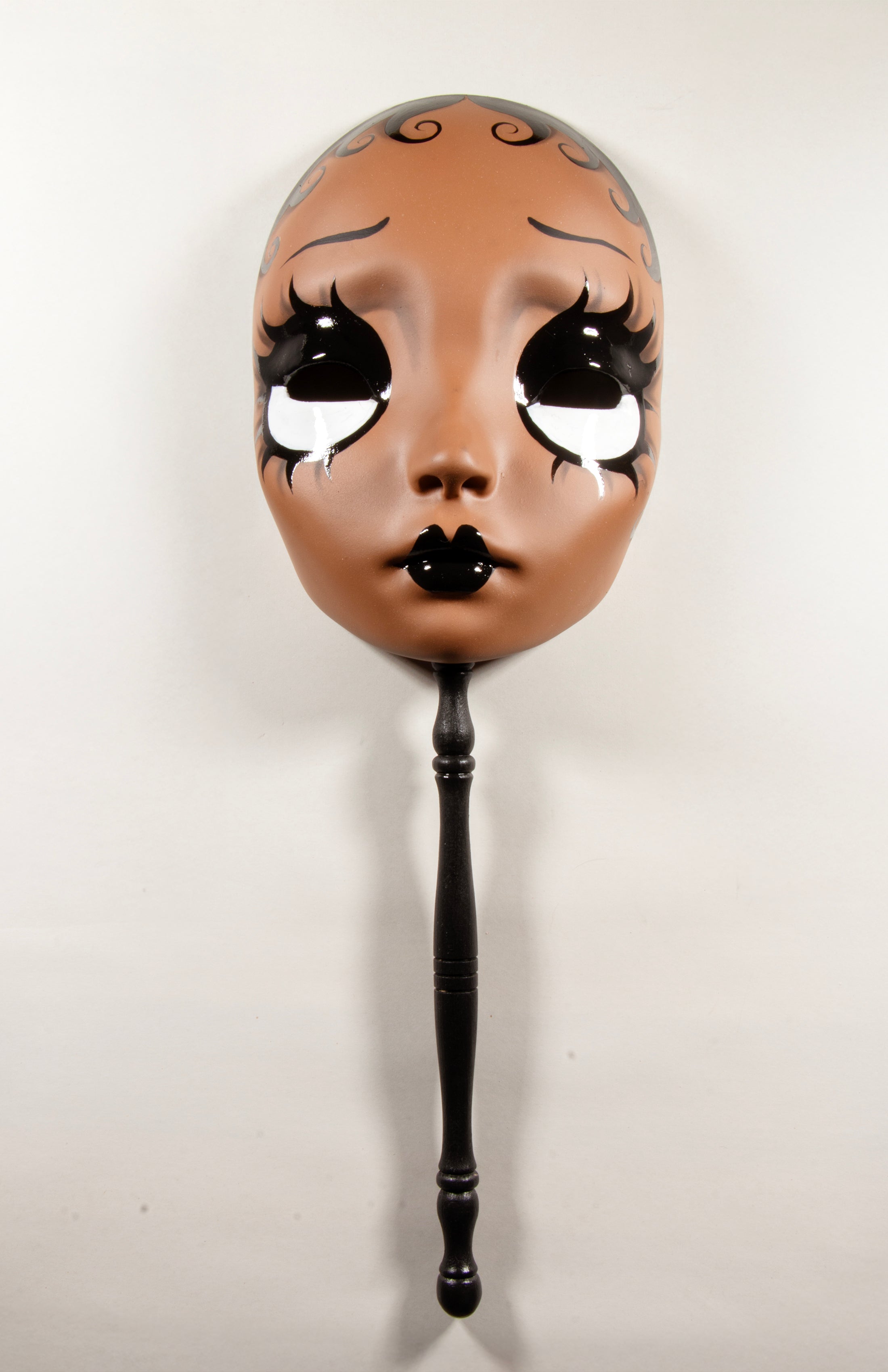 One-of-a-kind, handmade Pidgin Doll Mask by Joshua David McKenney.  Please note this mask is intended to be decorative.