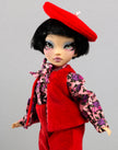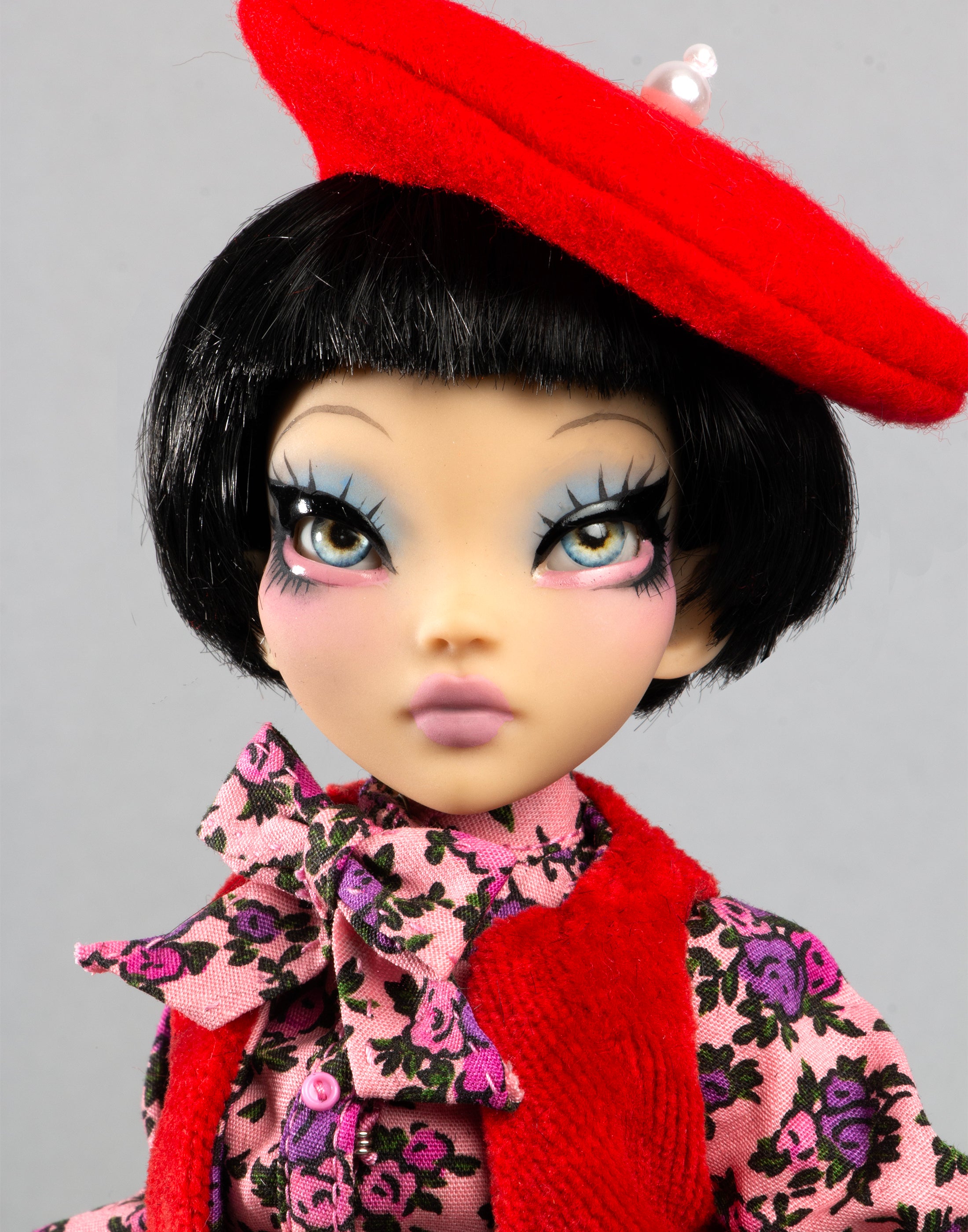 Hand-cast high-quality resin doll with 7 points of articulation internally strung with elastic; hand painted; inset acrylic eyes; removable acrylic wig.