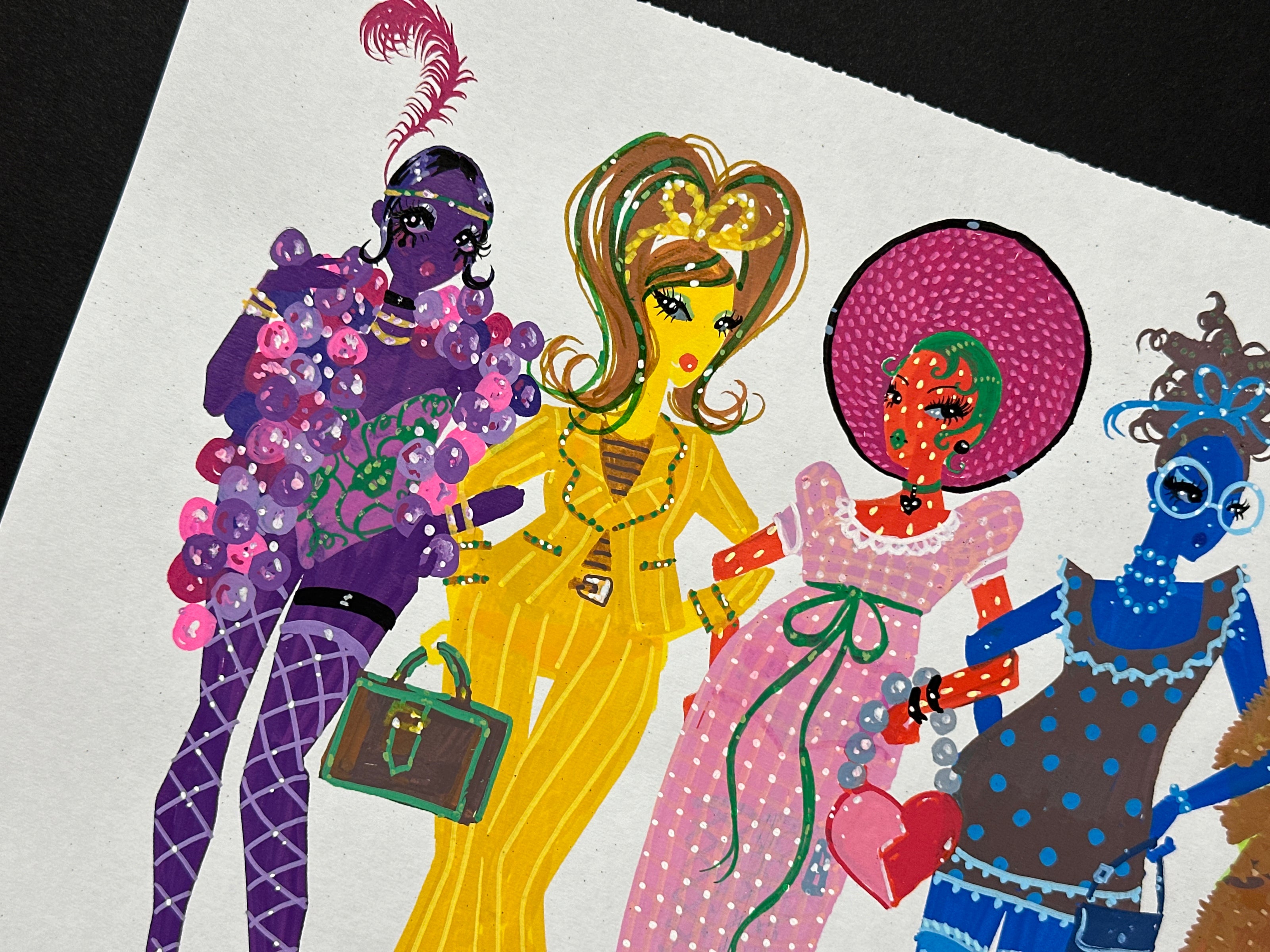 Original, one-of-a-kind fashion illustration by Pidgin creator Joshua David McKenney.